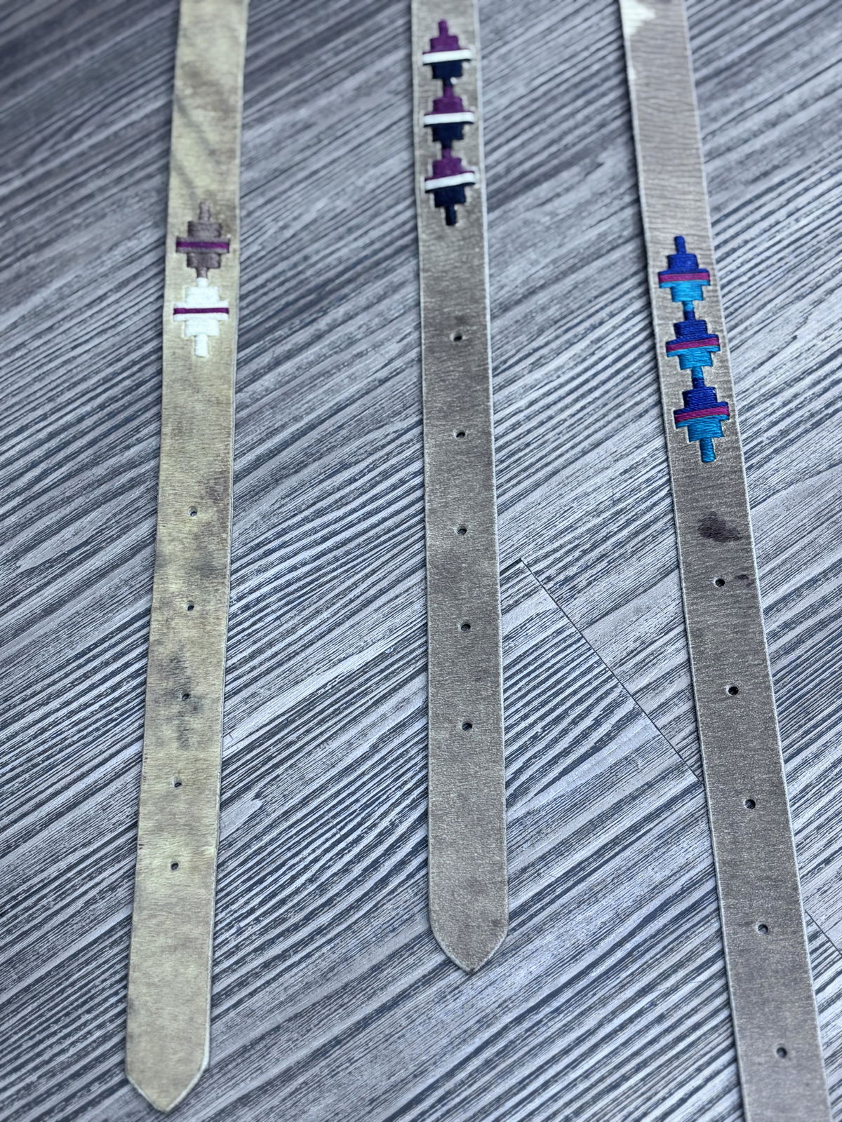 Cinto fino cuero crudo bordado