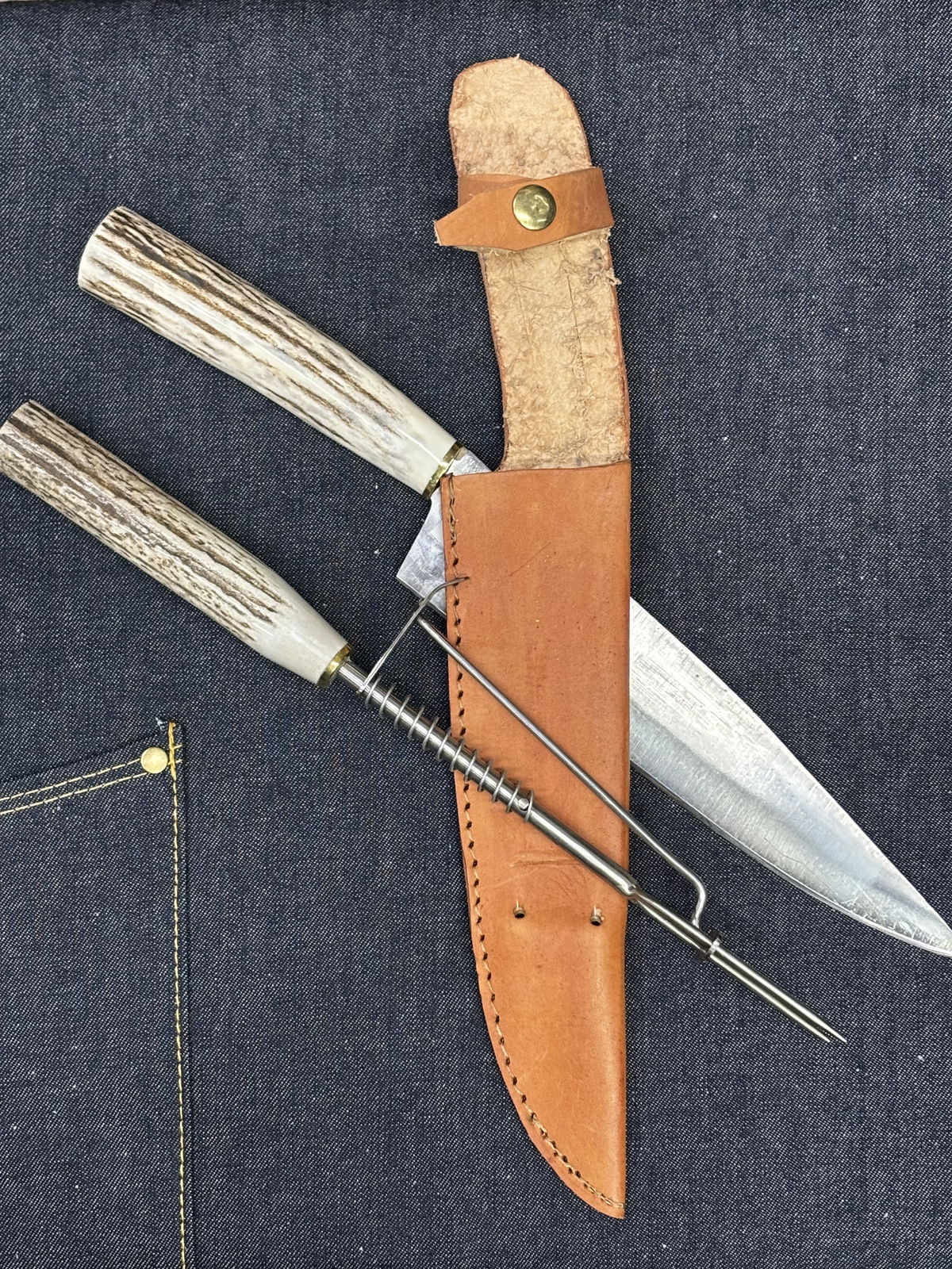 Juego de cuchillo y destenedor con cabo de asta (223657)