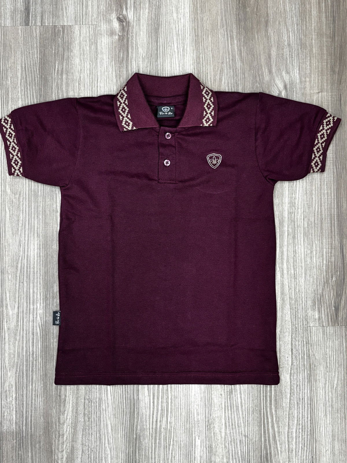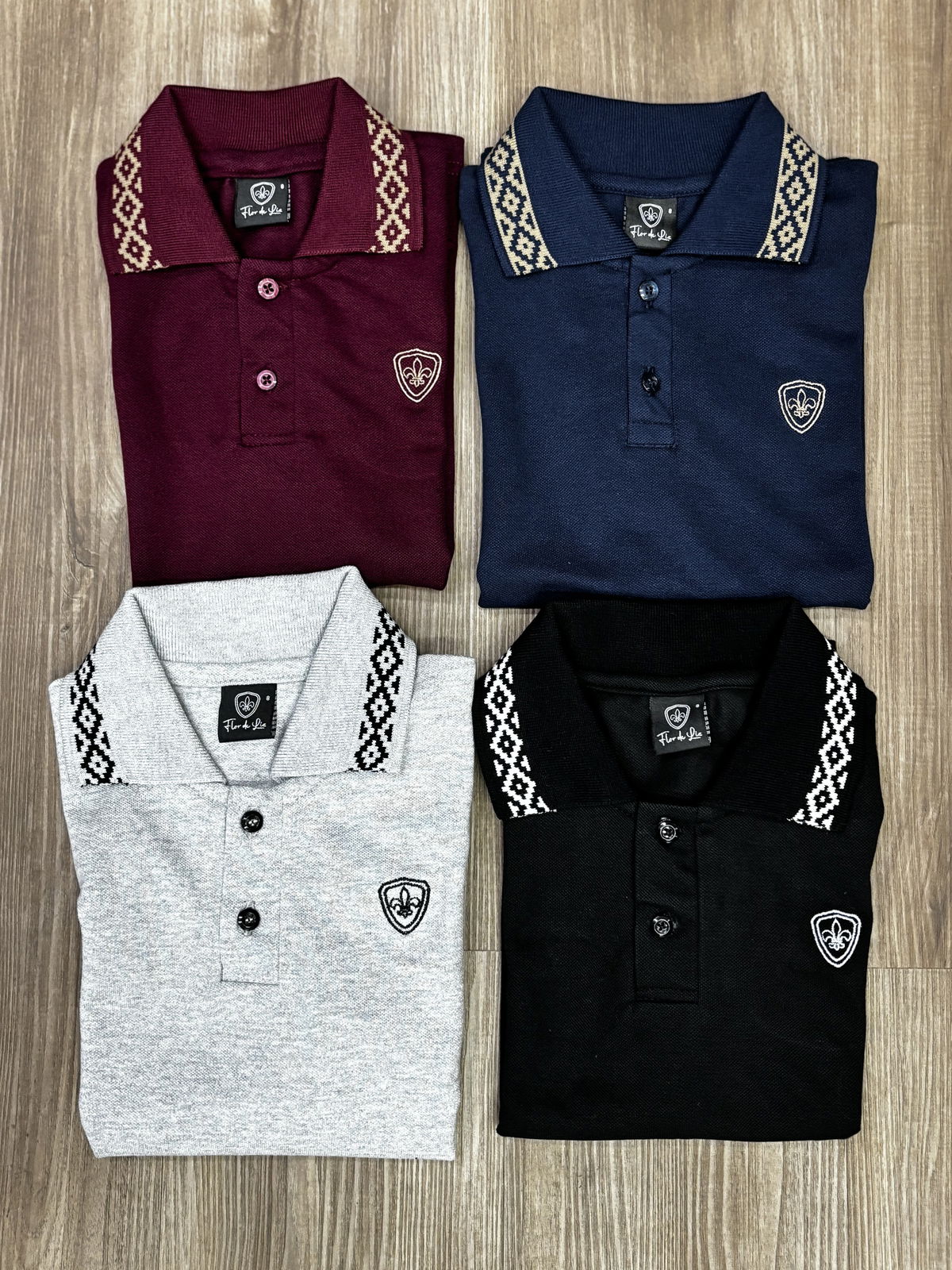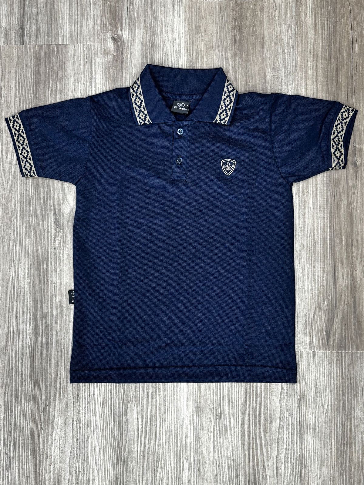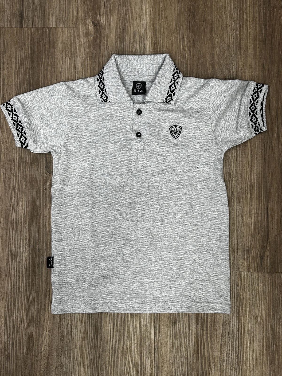 Chomba de piqué para niño con guarda pampa en cuello y mangas.