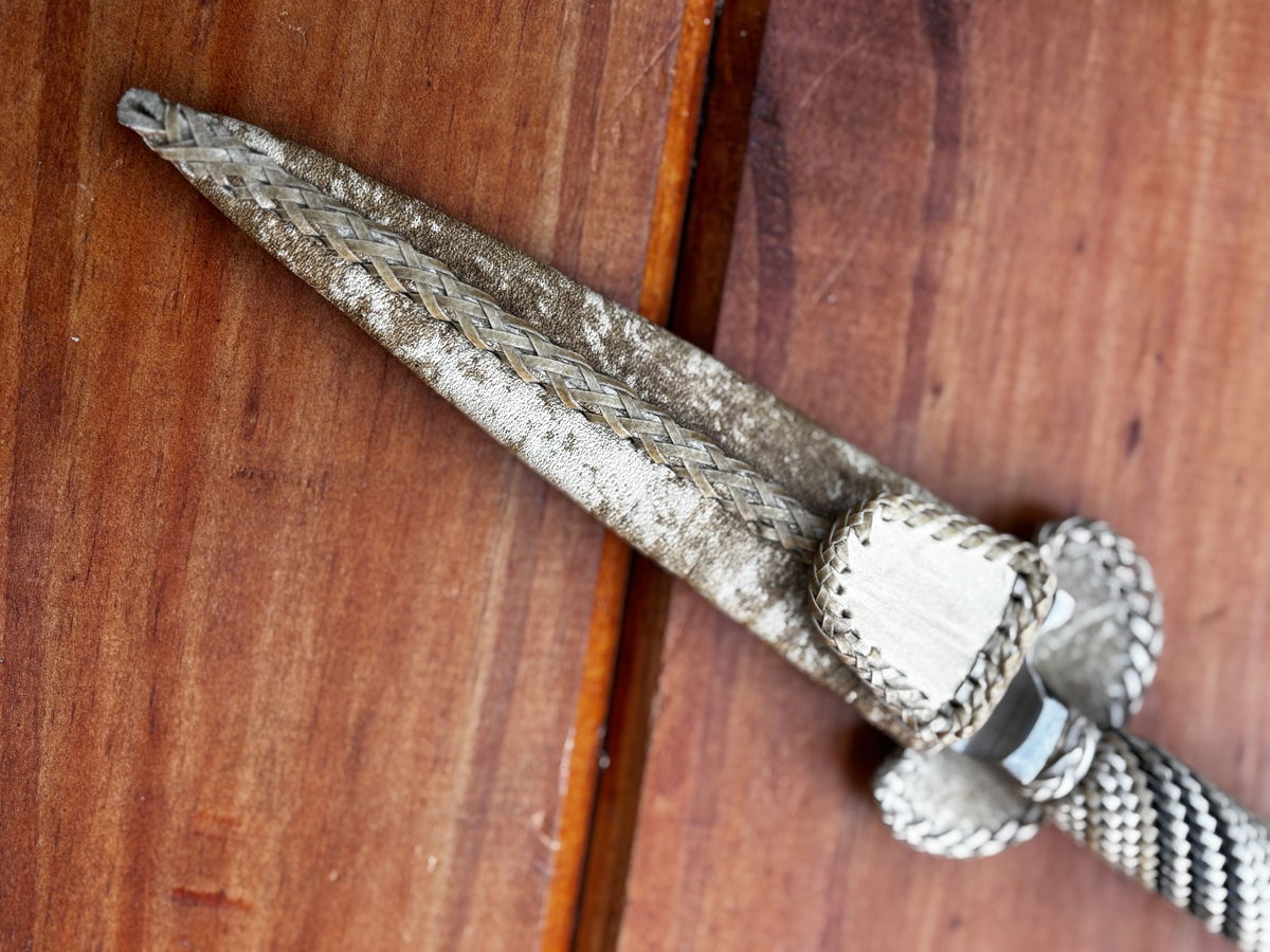 Incluye vaina de cuero crudo artesanal, ideal para proteger y acompañar la pieza.