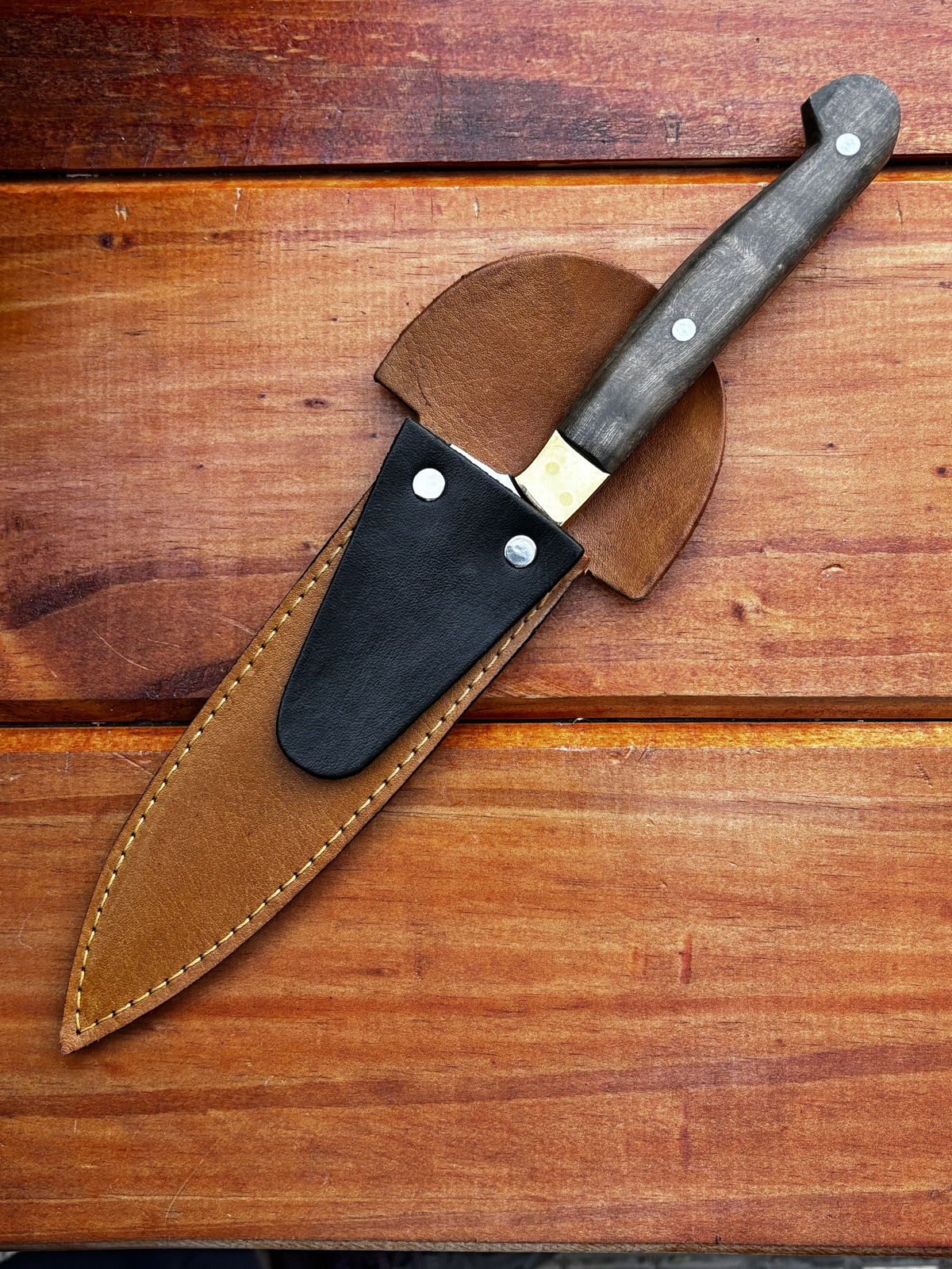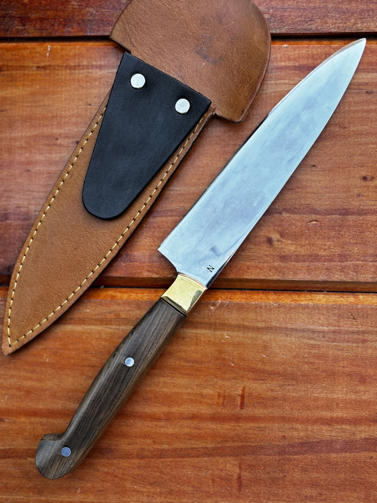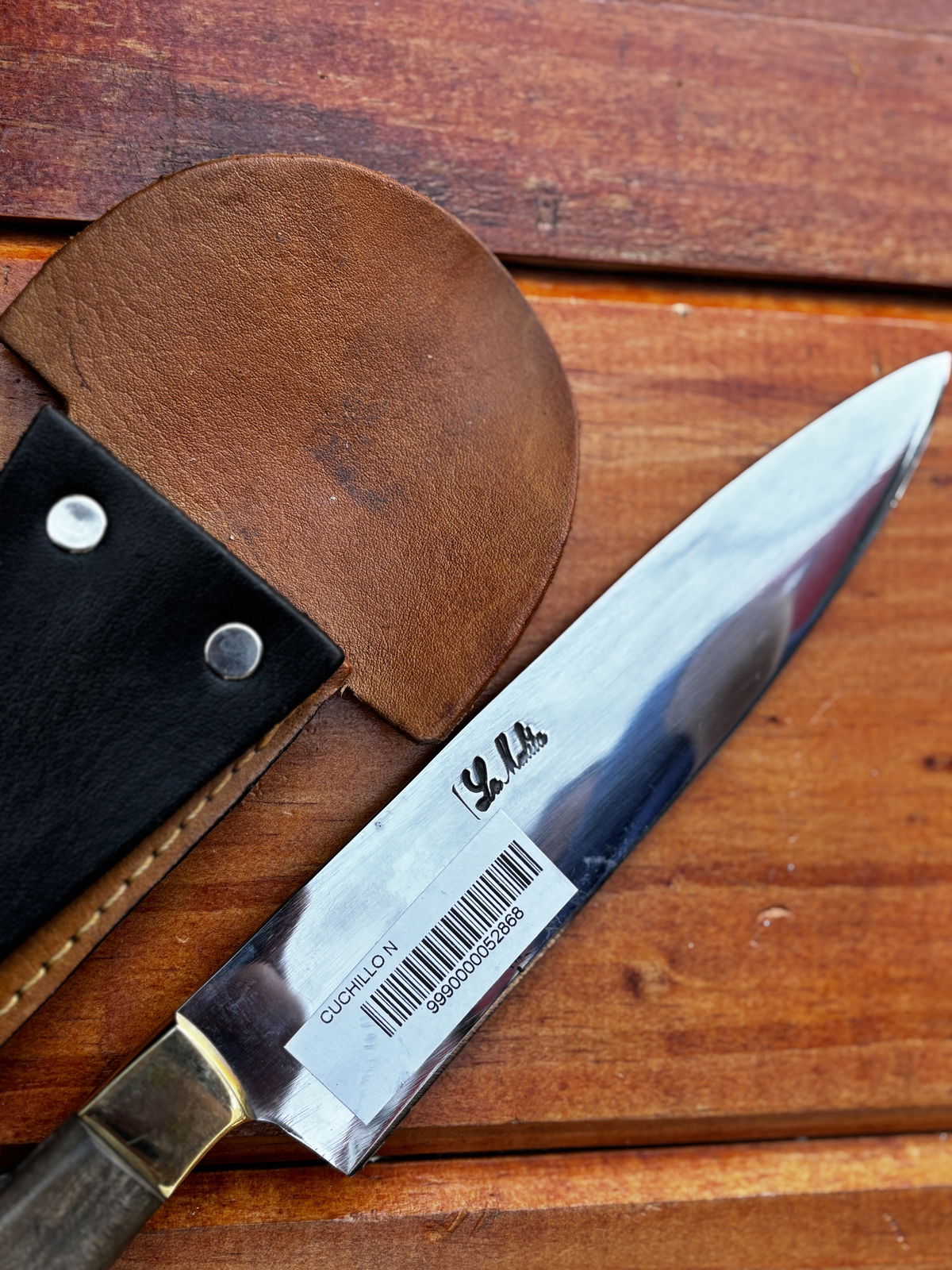 Cuchillo N, de acero inoxidable con cabo de madera, hoja de una sola pieza que recorre todo el cuchillo para mayor resistencia y durabilidad.