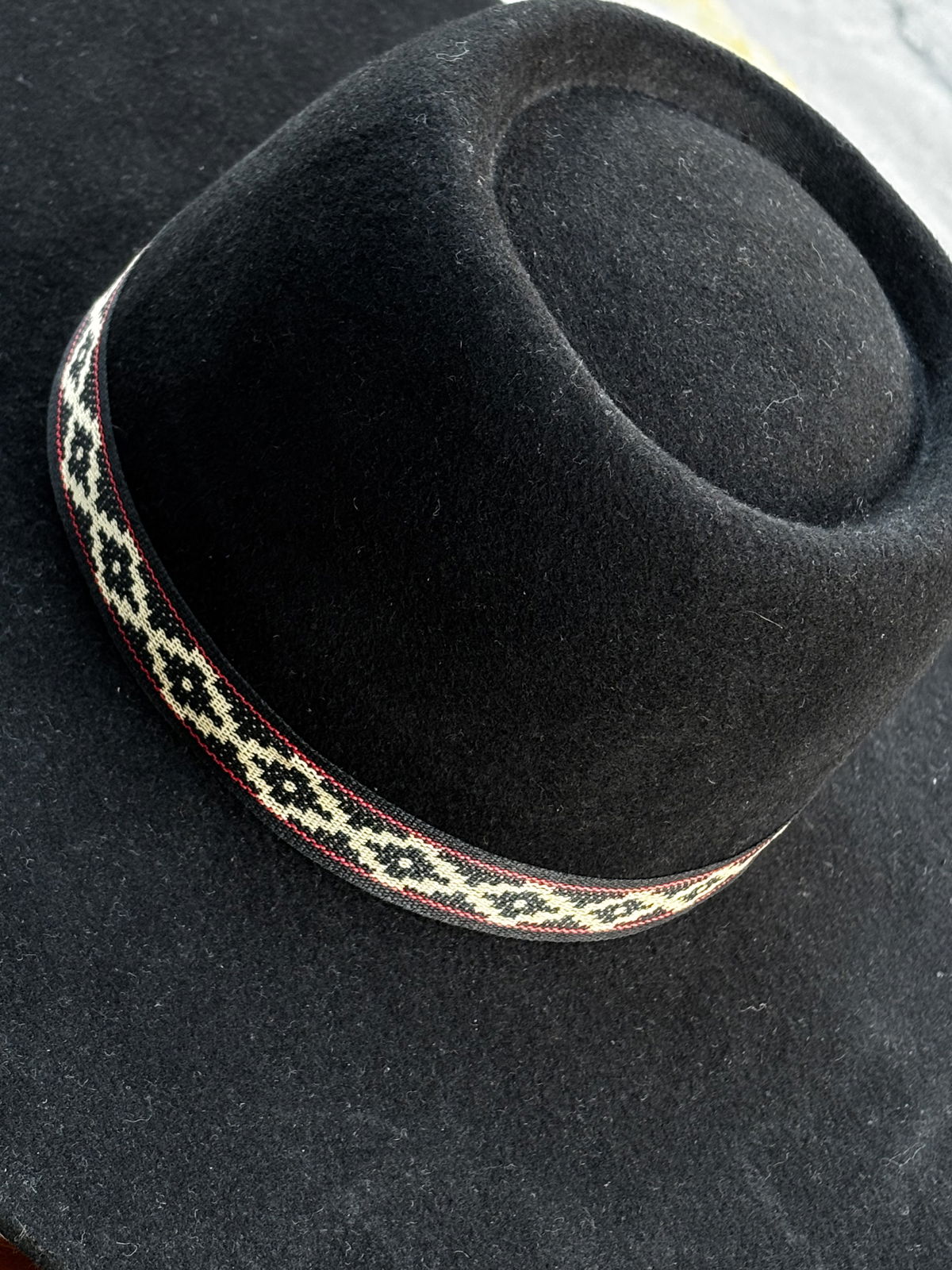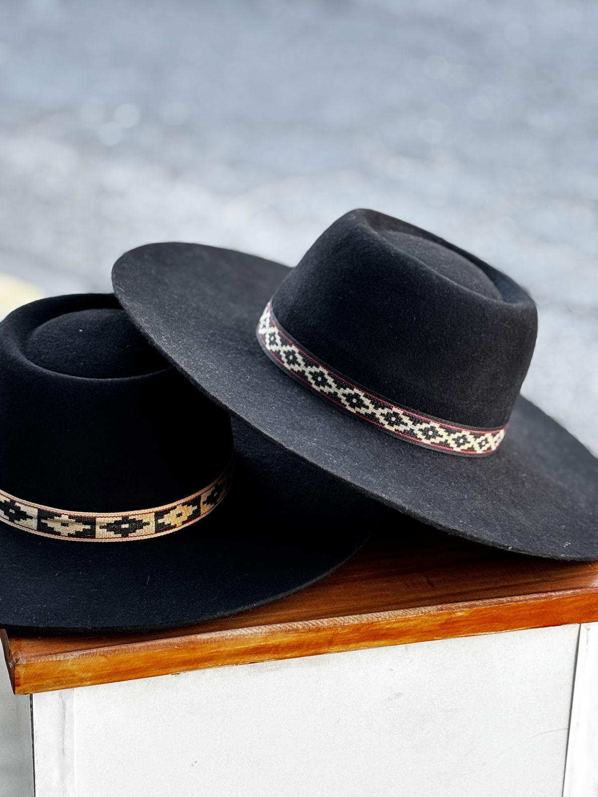 Sombrero confeccionado en paño de alta calidad, con ala de 10 cm y copa firme. Lleva una clásica guarda pampa tejida, que le da un toque bien criollo. Ideal para completar tu look campero con distinción