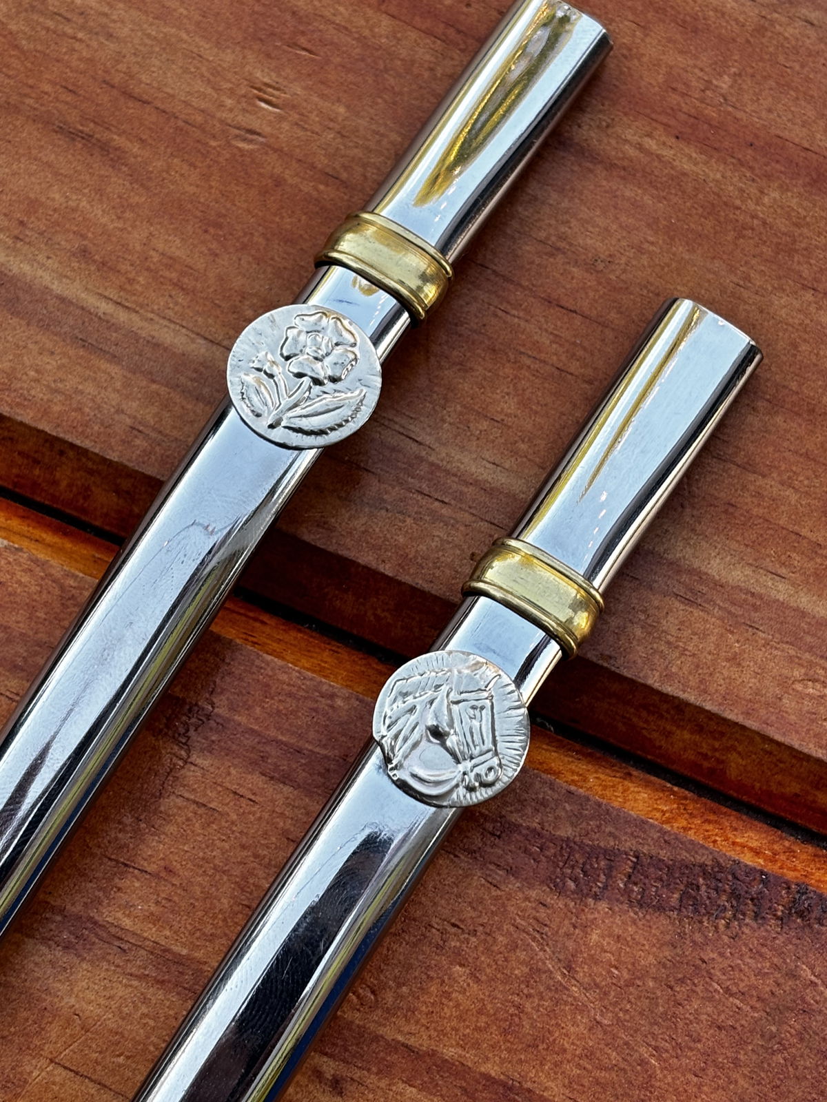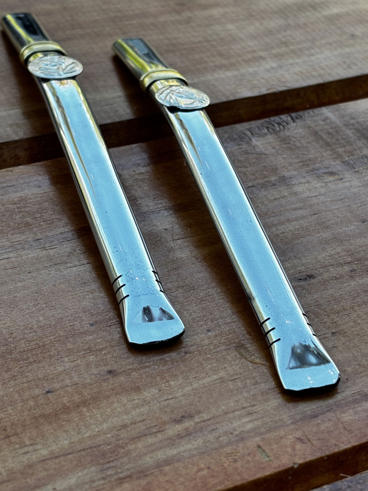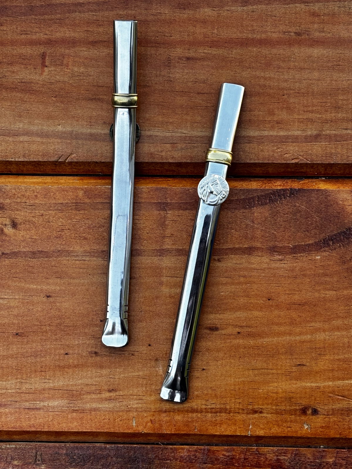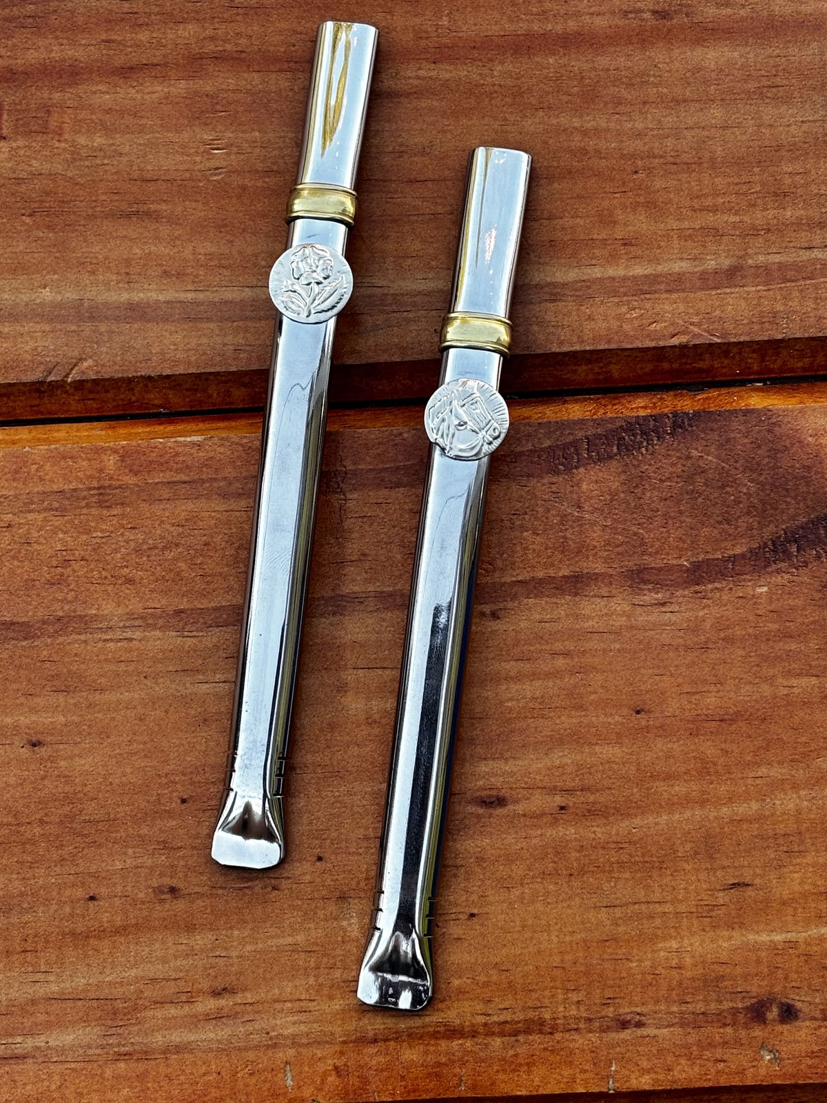 Bombilla de acero, con dije de alpaca. Mide alrededor de 15-16 cm.
