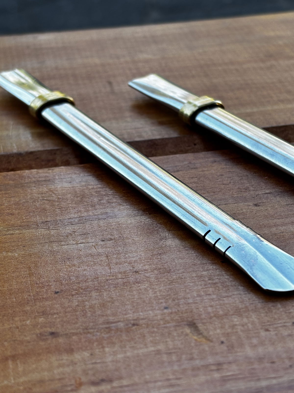 Bombilla acero chata. Mide alrededor de 15-16 cm.