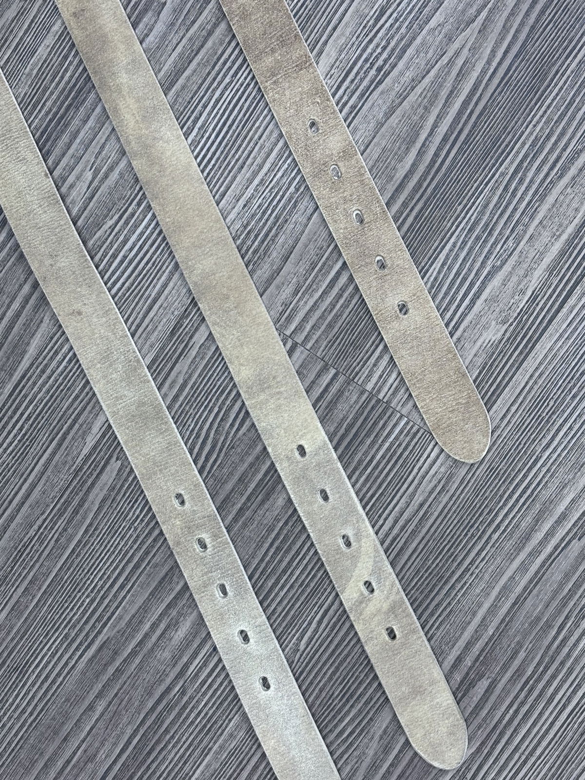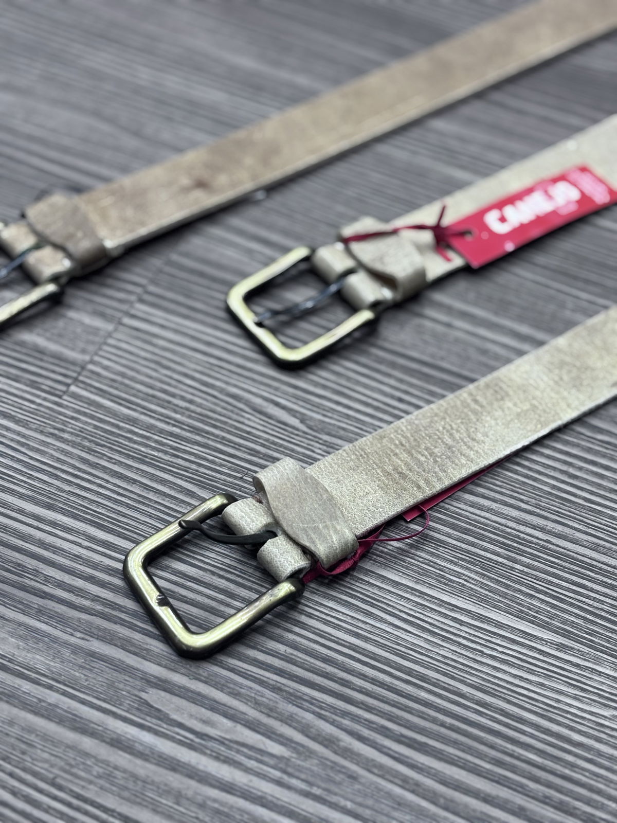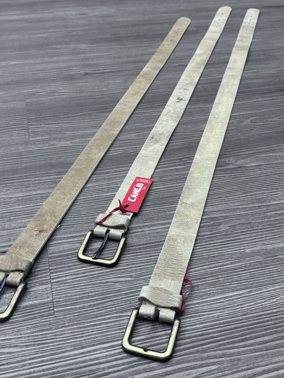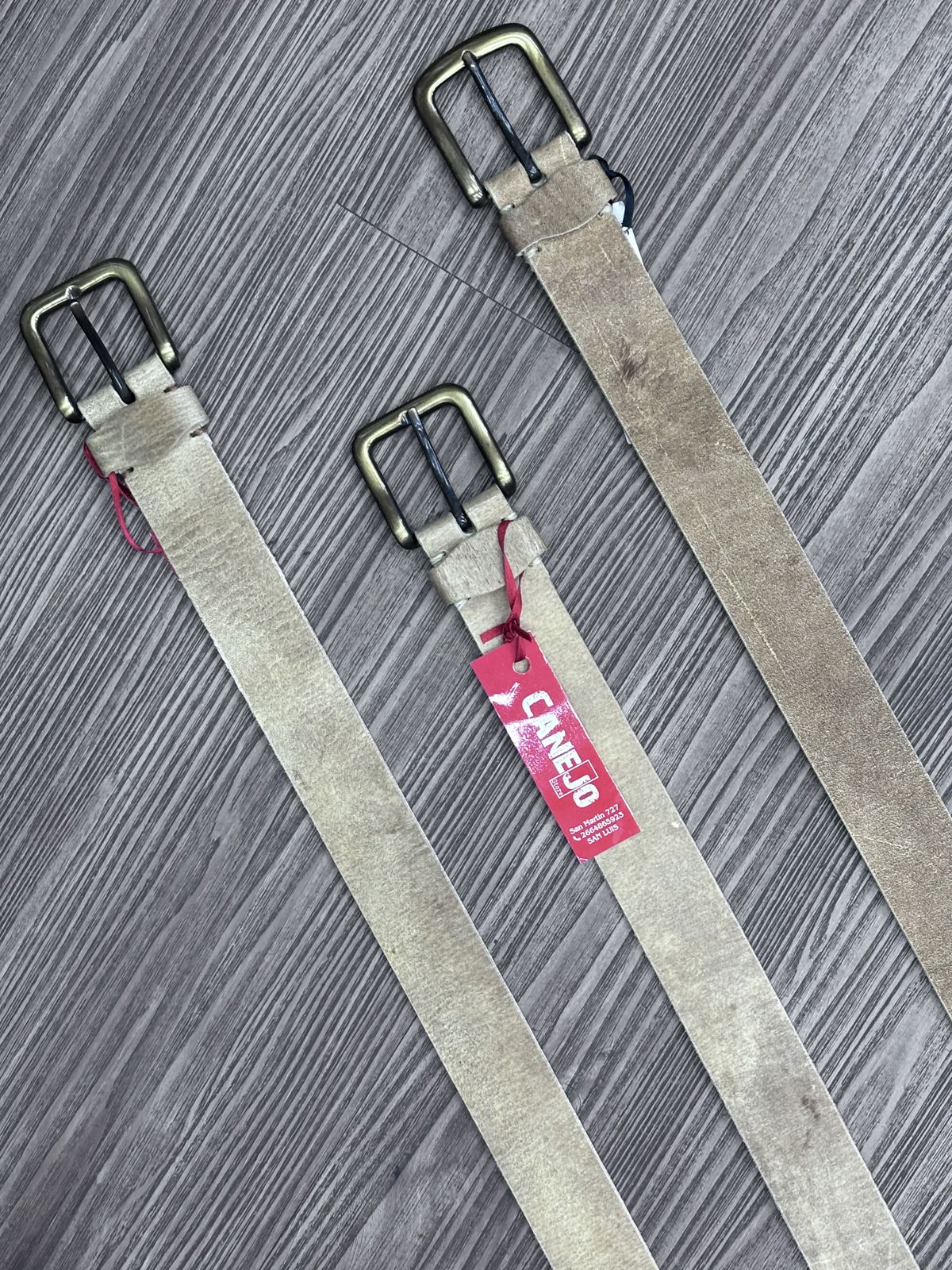 Cinto en cuero crudo liso afeitado y hebilla de acero.