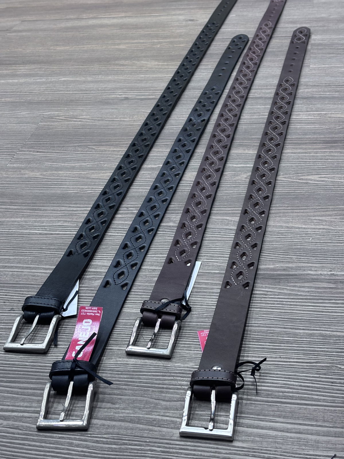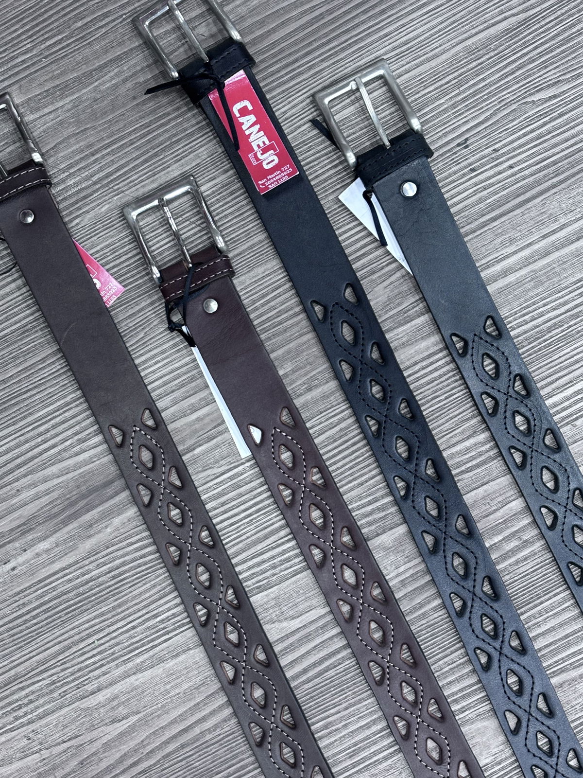 Cinto de cuero (suela), con detalles calados en orificios y hebilla de acero. Consultar medidas disponibles. Su mensaje no molesta.🤠
